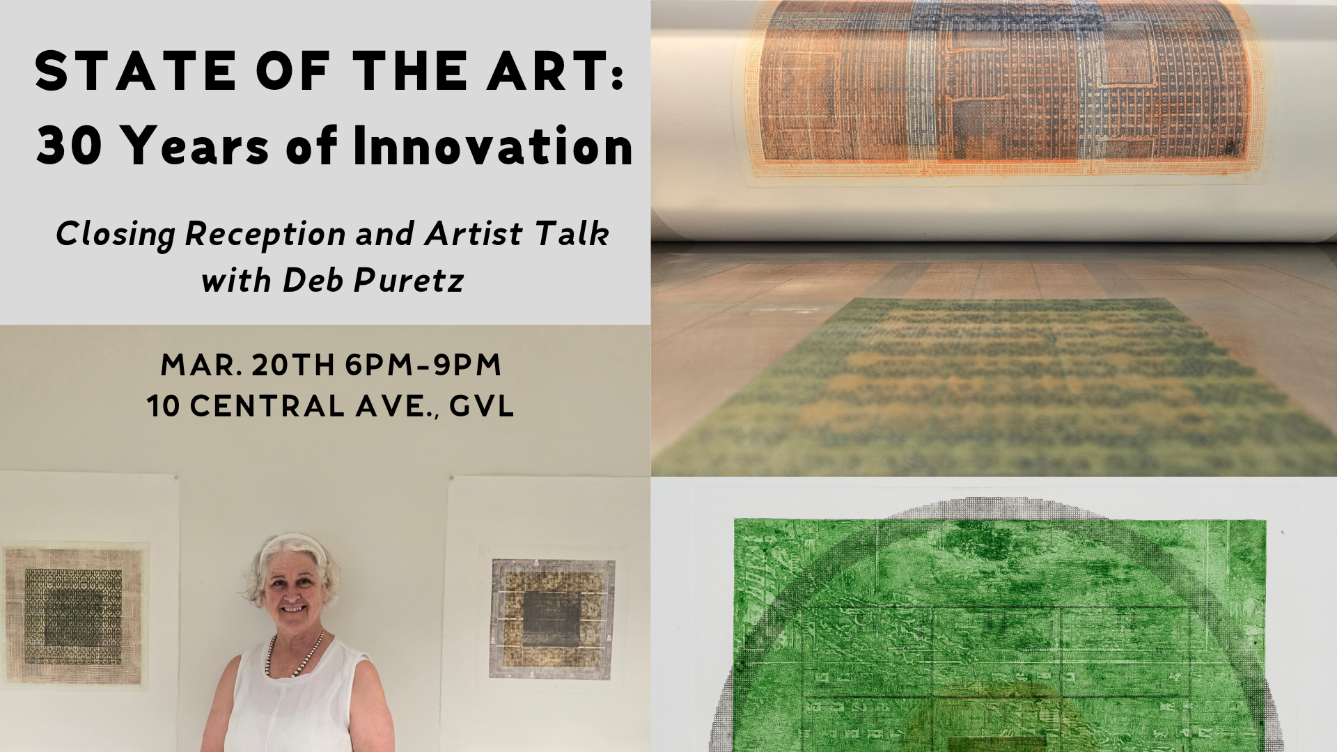 Don’t miss "State of the Art: 30 Years of Innovation," a solo exhibition featuring new work by Deb Puretz in the Good Art Co. Printshop!